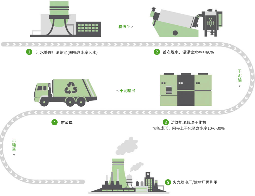 傳統污泥熱干化系統供熱量90%轉化成排風熱損失(水蒸汽潛熱及熱空氣顯熱);